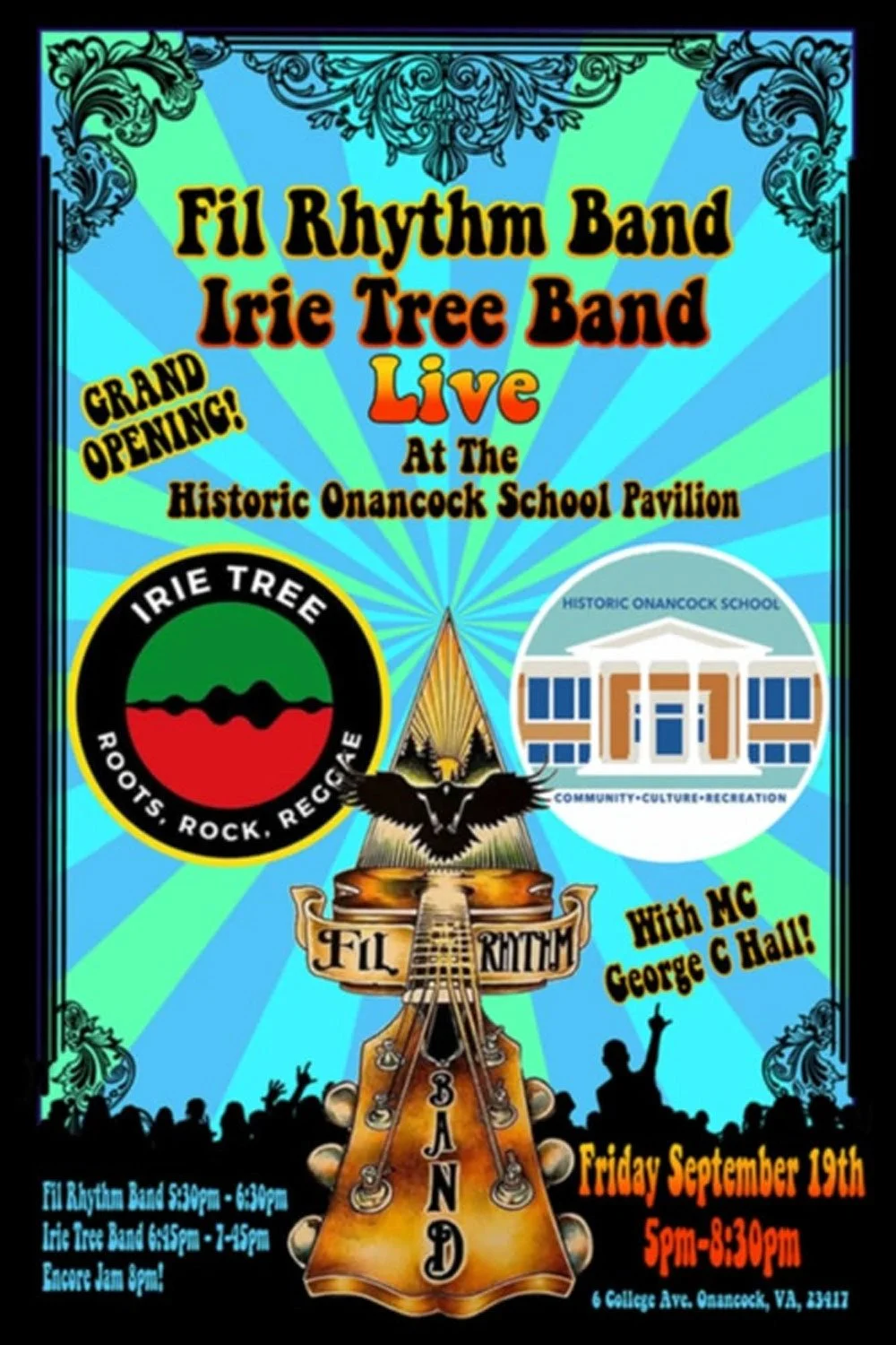 A FREE concert featuring incredible local talent, the Fil Rhythm Band and Irie Tree Band, live on stage at the newly built Pavilion! There will also be a ribbon cutting with the ESVA Chamber at 5:00 pm and the show will start at 5:30 pm! We are also hosting delicious food trucks like Mt. Nebo Meats and will have alcoholic drinks for sale. Join us for an evening of great entertainment and community.